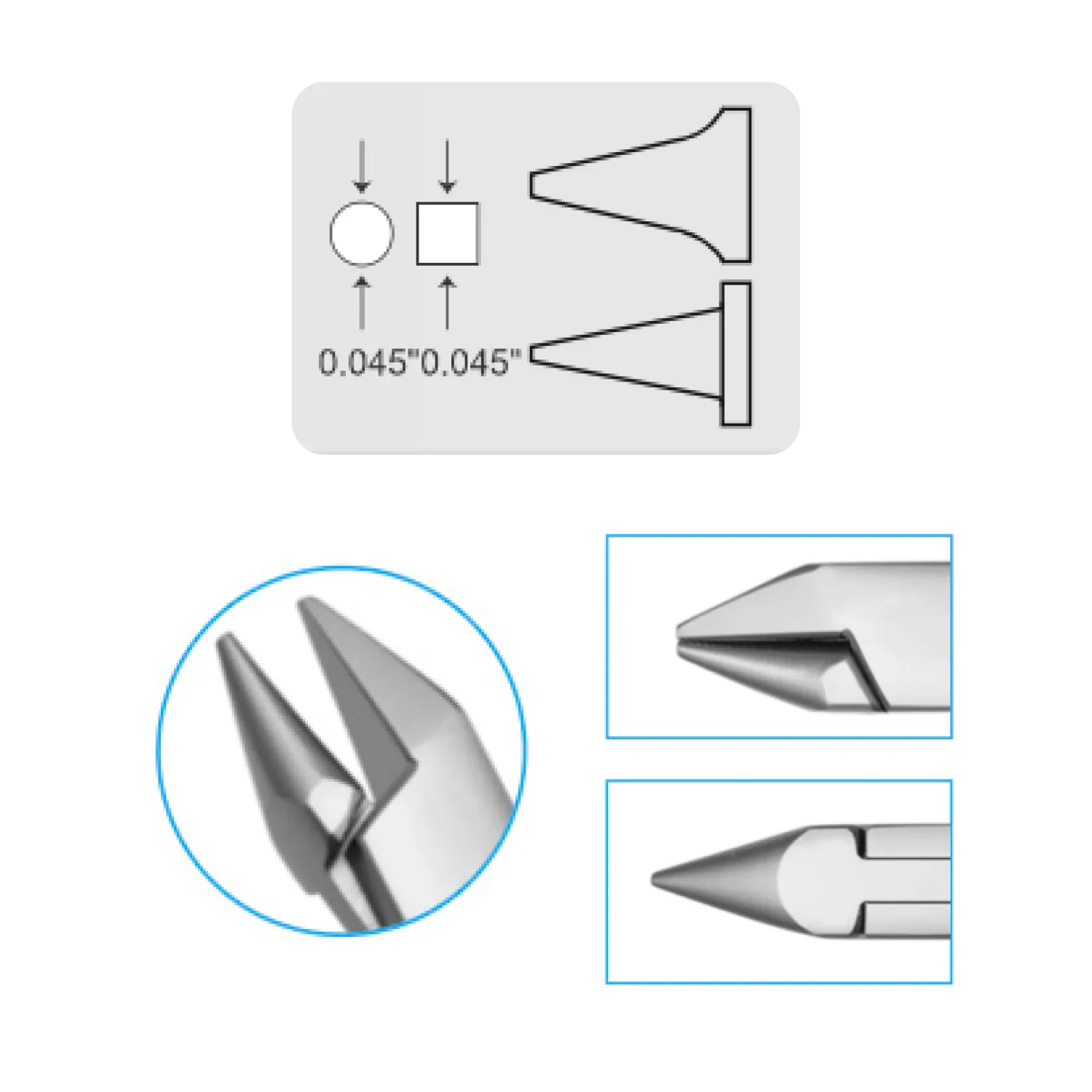 Capacité maximale : permet de plier des fils ronds, carrés et rectangulaires jusqu’à 0,030”.